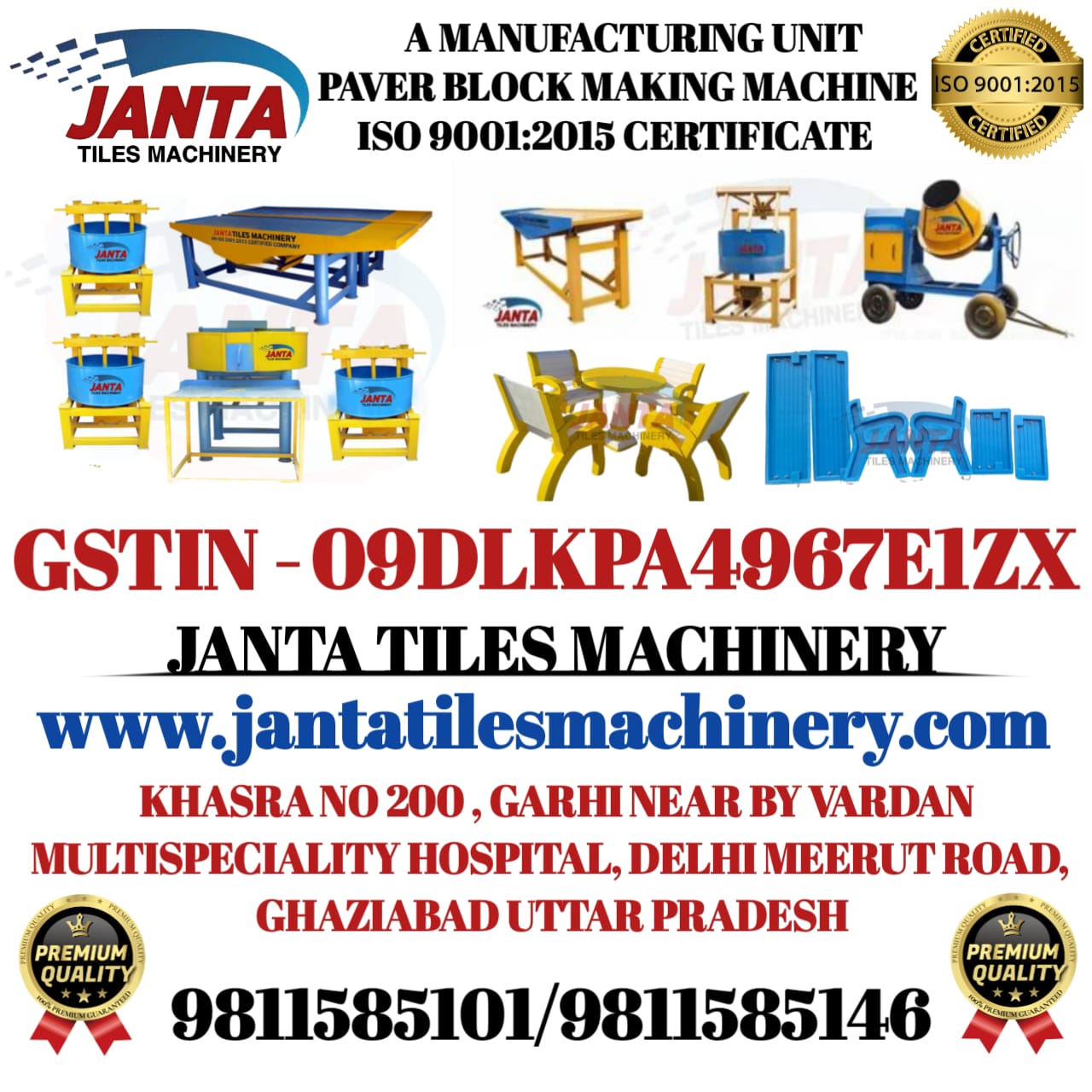 Janta Tiles Machinery is known as one of the major Paver Block Making Machine Manufacturers in Ghaziabad. We offer a wide range of construction-based machinery at affordable price ranges. We have been the market leader for a long time now and hence we are focused on delivering quality to our customers that is not like just a quick fix but a long-term effect of reliability for the customers that we serve.